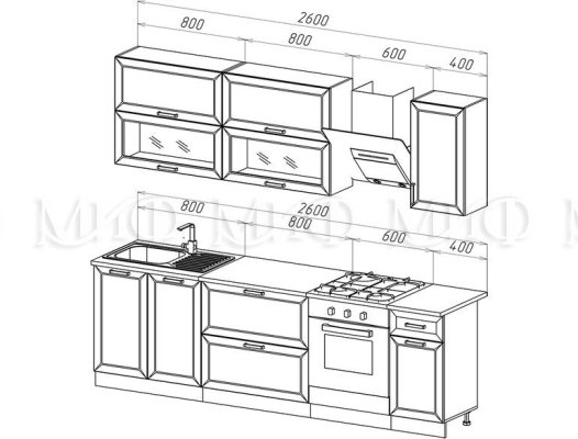Высота верхних шкафов: 718 мм